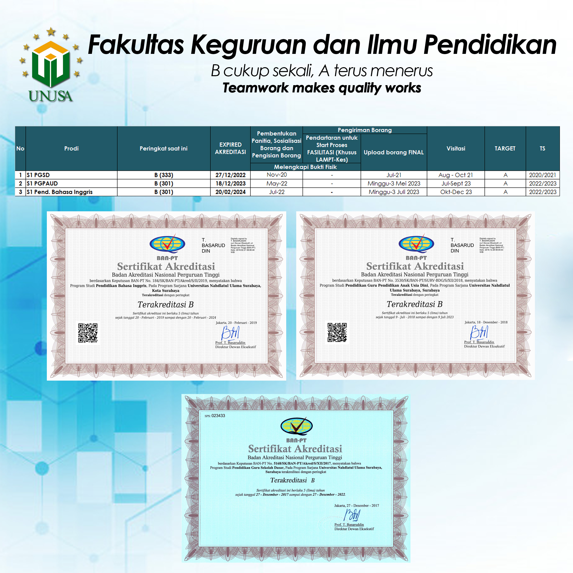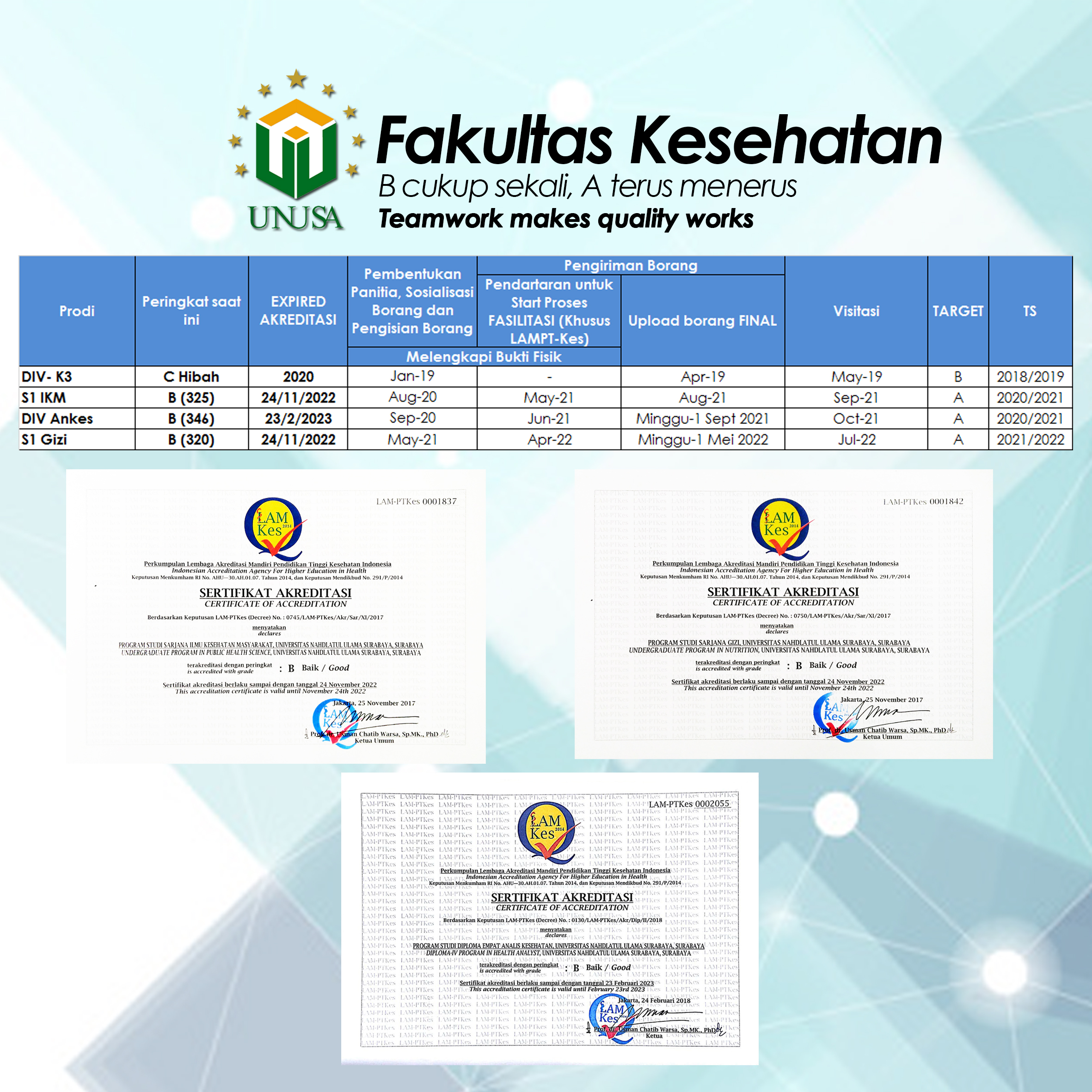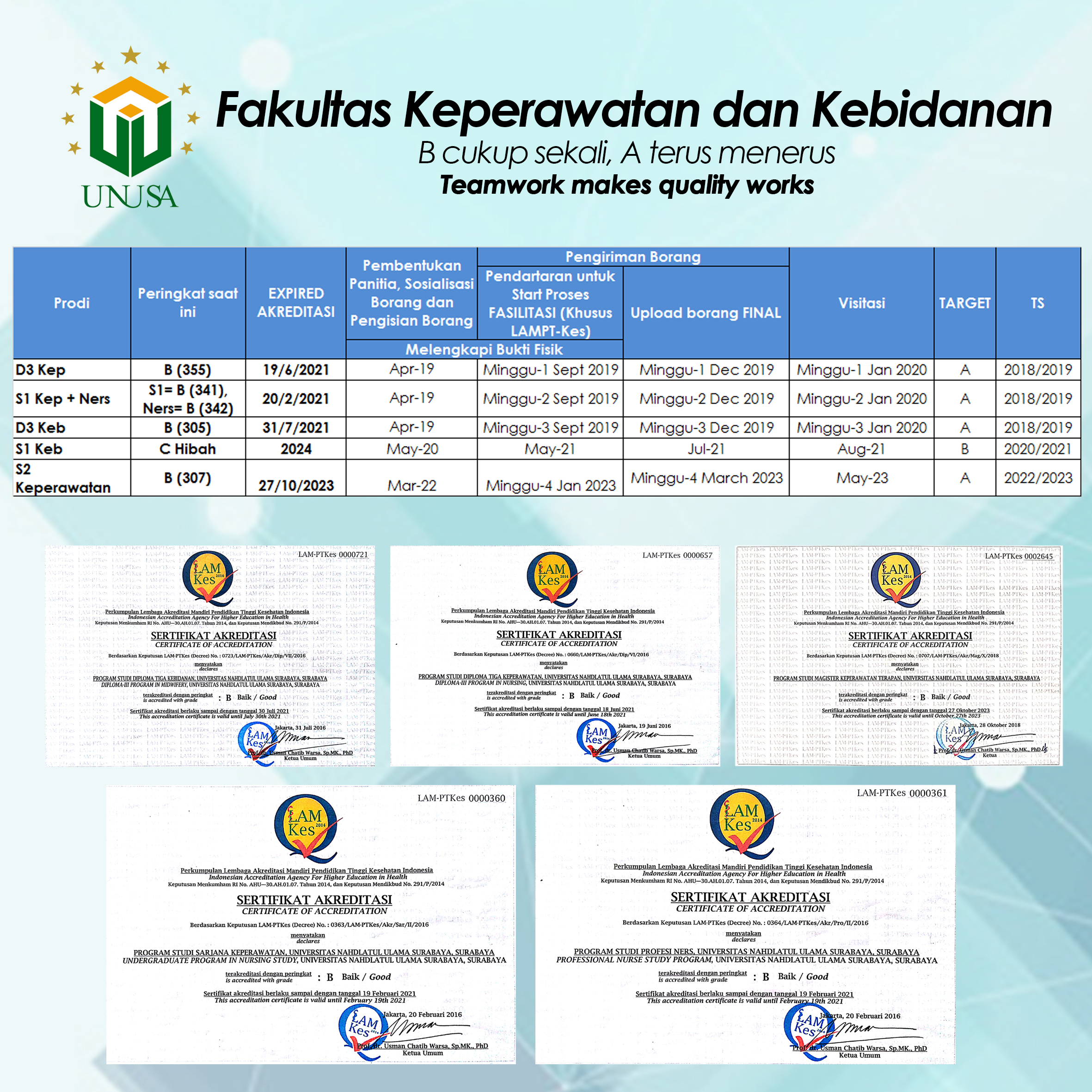 Sebagai usaha meningkatkan manajemen utu Universitas Nahdlatul ulama dan men-cover up segala kegiatan yang harus dilakukan oleh Unusa setiap tahunnya, maka kalender tata kelola ini dibuat. Adapun Kalender tersebut adalah sebagai berikut: